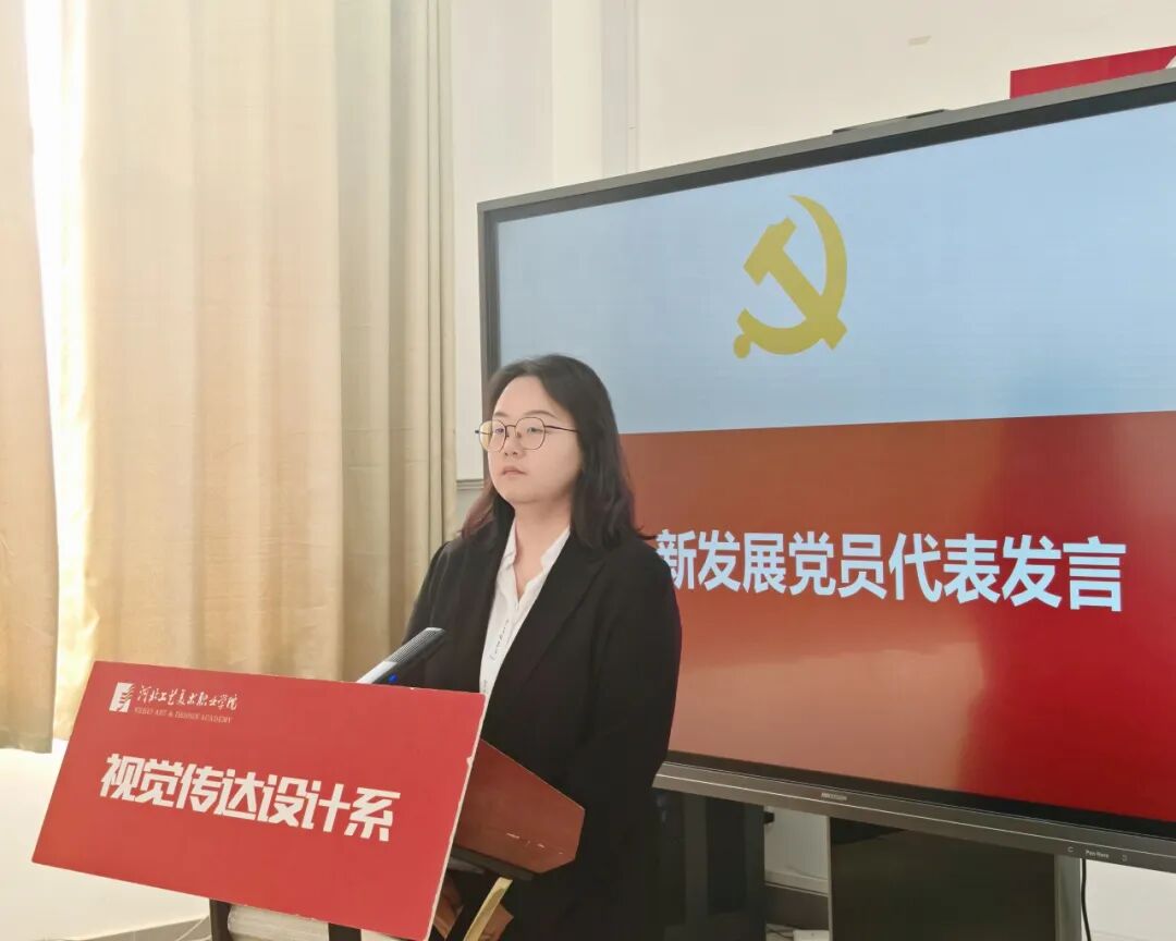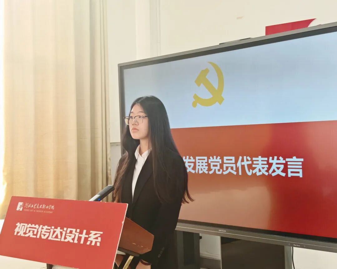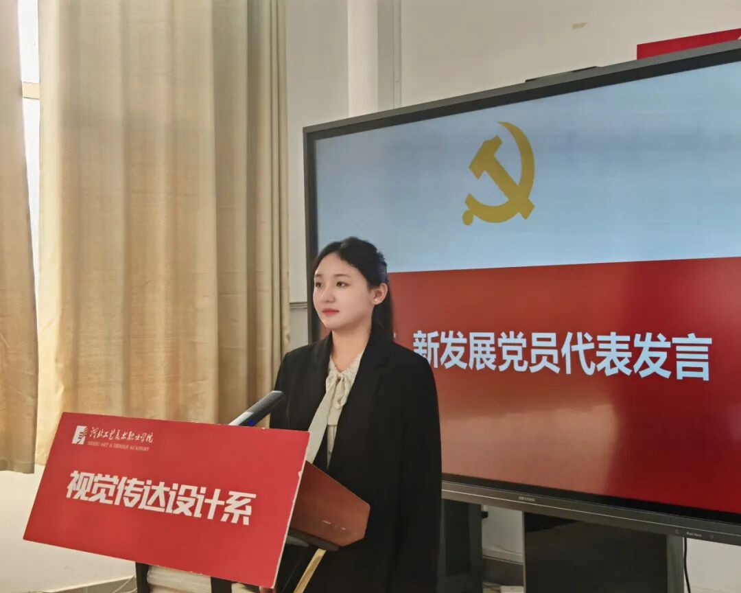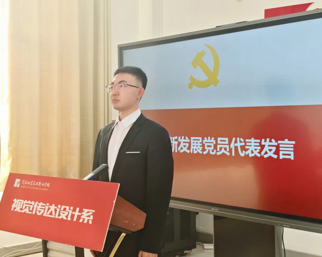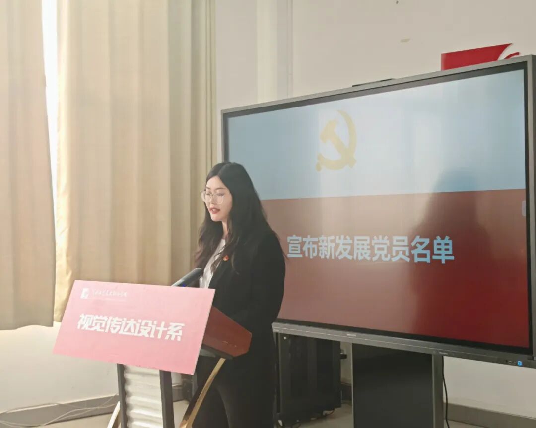 党支部书记赵骄阳向全体新党员表示热烈祝贺,并送上党组织的殷切期望。希望全体新党员牢记入党誓词,坚定理想信念,把个人追求融入党和国家事业之中,在艺术道路上坚守初心、勇攀高峰,以精湛的专业能力和务实的工作作风,为文化强国建设、为中华民族伟大复兴的中国梦贡献视传人的智慧和力量。