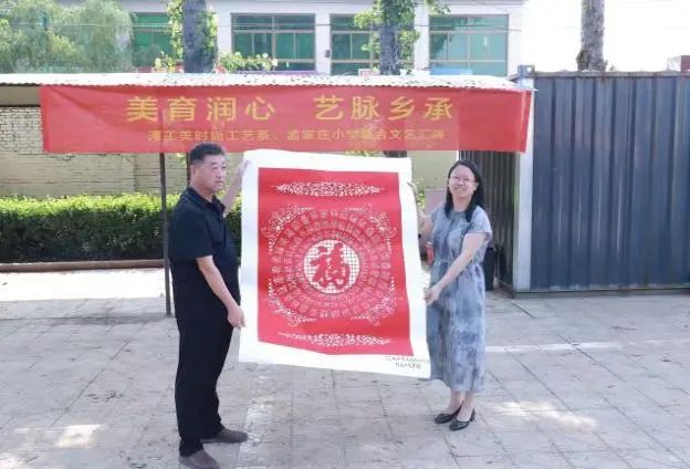 实践团队与孟家庄小学联合举办了“美育润心·艺脉乡承”主题文艺汇演。本次活动以艺术展演为载体,创新思政教育形式,通过我系学生与小学生同台演出、互动交流,打造了一堂生动活泼的思政实践课。汇演中集体朗诵《少年强则国强》将汇演推向高潮,得到200余名师生以及家长一致好评。活动尾声,时尚工艺系党总支副书记张玉英代表实践团队赠予孟家庄小学福字,愿这抹炽热的红,化作他们课桌上的晨曦,笔尖上的星光,照亮前方。本次汇演,实现了思政教育的入脑入心,小学生们在艺术熏陶中深化了爱国情怀,大学生们在指导排练中强化了使命意识,充分展现了新时代青年与少年儿童携手共进、同心筑梦的精神风貌,为乡村振兴注入了青春力量。