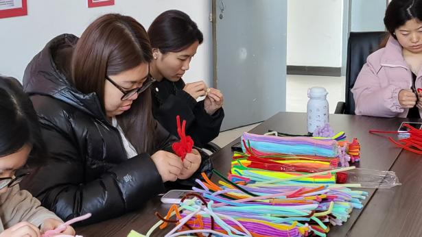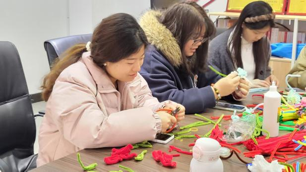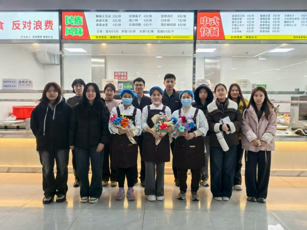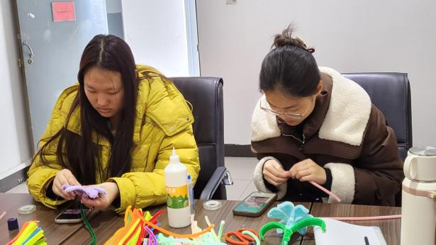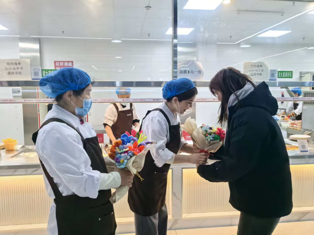 随后,同学们充分发挥美术专业特长,以五彩扭扭棒为材料,巧手构思、精心编织,在折、扭、绕、粘的细致操作中,创作出一束束满载心意的手工花束。大家手捧花束走进宿舍、食堂,将花束送到宿管阿姨、食堂阿姨手中,向坚守在校园平凡岗位的巾帼劳动者们送上节日的祝福与最诚挚的感谢。